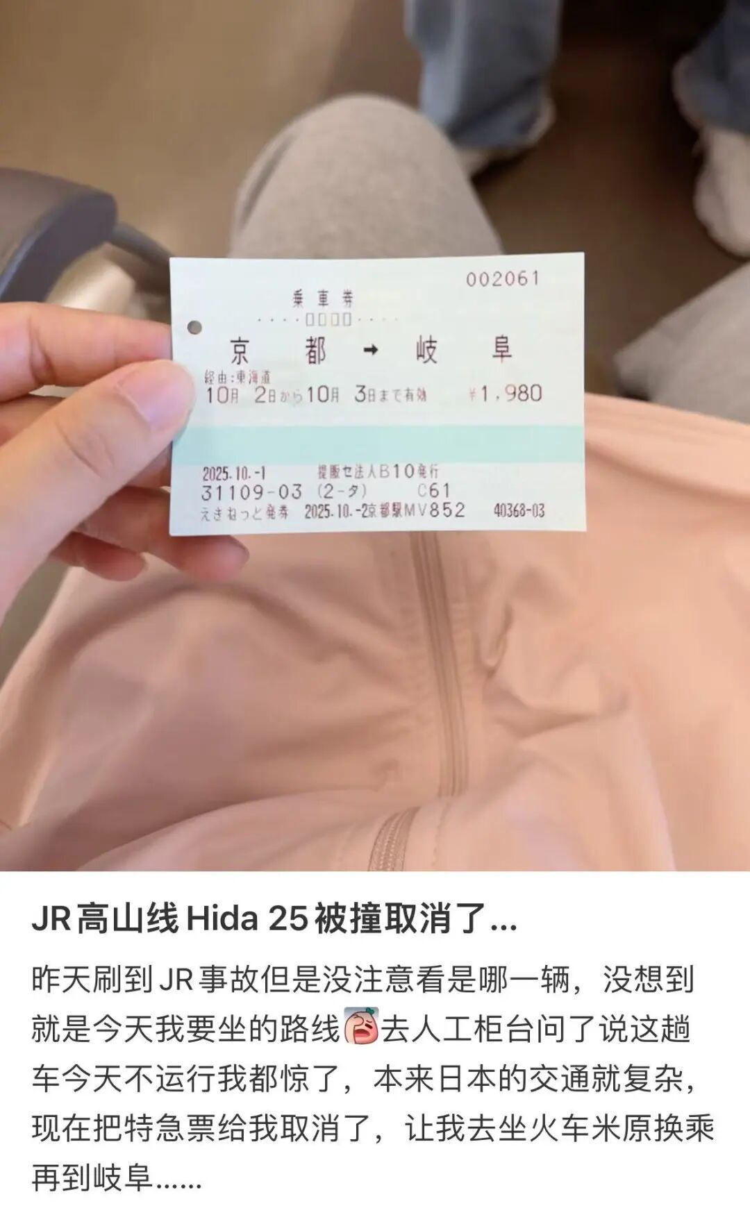 受事故影响,10月2日,日本部分列车处于停运状态。另一位在日本旅游的中国游客陈小姐告诉记者,她们原计划10月2日搭乘JR高山线从京都出发前往岐阜,但到达现场后,人工柜台工作人员称该趟列车由于10月1日的事故停运。“今天是京都到名古屋段受影响,我们只好换别的车出行。”