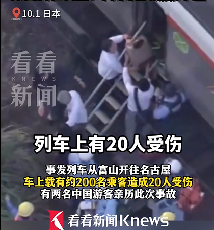 据日本JR东海公司消息,事发列车从富山开往名古屋,车上载有约200名乘客,事故目前造成了20人受伤。来自中国内蒙古的游客小姚与面部受伤的宁女士亲历了此次事故。